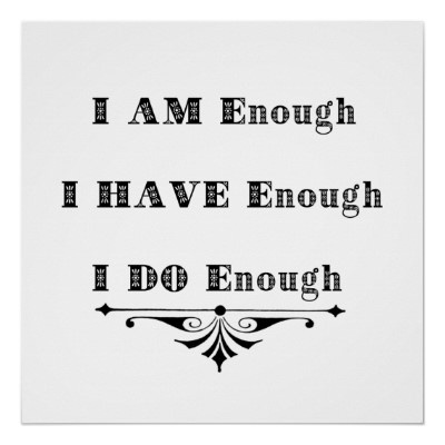 I shared a heartbreaking story with a friend about someone I knew from graduate school who had been exploited, along with her daughter, through her child’s vulnerability. My friend then passed on a mantra that has now deeply impressed everyone I have shared it with: “The first thing I say to myself when I wake up in the morning is ‘I am enough,'” she said. “After that, I know that I can greet my daughter as she wakes up and let her know that whatever she has to confront, I am prepared to meet that too,” she confided. What a wonderful way to greet the day: With crucial information necessary for meeting the surprises that might be in store for us but also the daily challenges interlaced throughout those moments that challenge our feelings of sufficiency. I was flipping through several popular magazines last night and saw all of the shoes that they wanted me to buy, the parties that I was not invited to attend, the people who I should want to know but do not and I decided that “I am enough,” despite what they think is missing. Knowing that I am enough gives me the power to disagree with the glossiest of authorities.