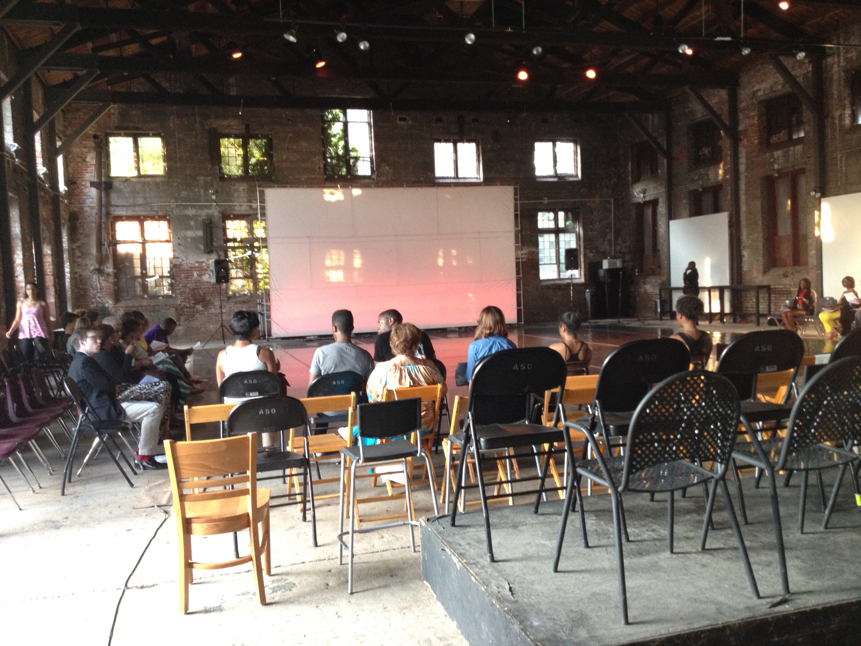 Unpaved roads lead to Goodson Yard, the warehouse seen in the above photograph. It was a beautiful evening to take in an event in the semi-outdoors. My phone told me that it was 79 degrees just before the start of the show. There was a wonderful breeze that would occasion past that added to the insistence to remain present to this experience. As I waited for the show to begin, I thought about Baby Suggs’s speech in the Clearing, her message of recovering, of laying it down, resounding in this setting. Through Baby Suggs, Morrison offers what has got to be the greatest speech written in the last fifty years. It is worth quoting at length: