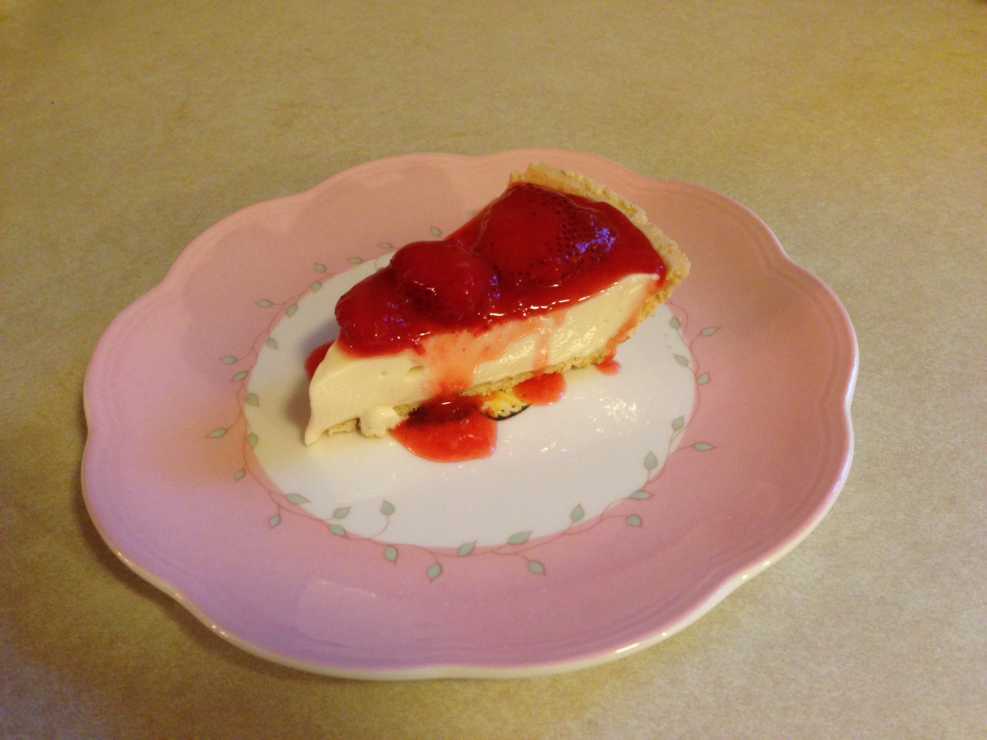 Last year I made a fruit tart to mark the occasion, but this year, I didn’t have the energy to cut up the fruit so I made a simple no-bake cheesecake and bought frozen strawberries: