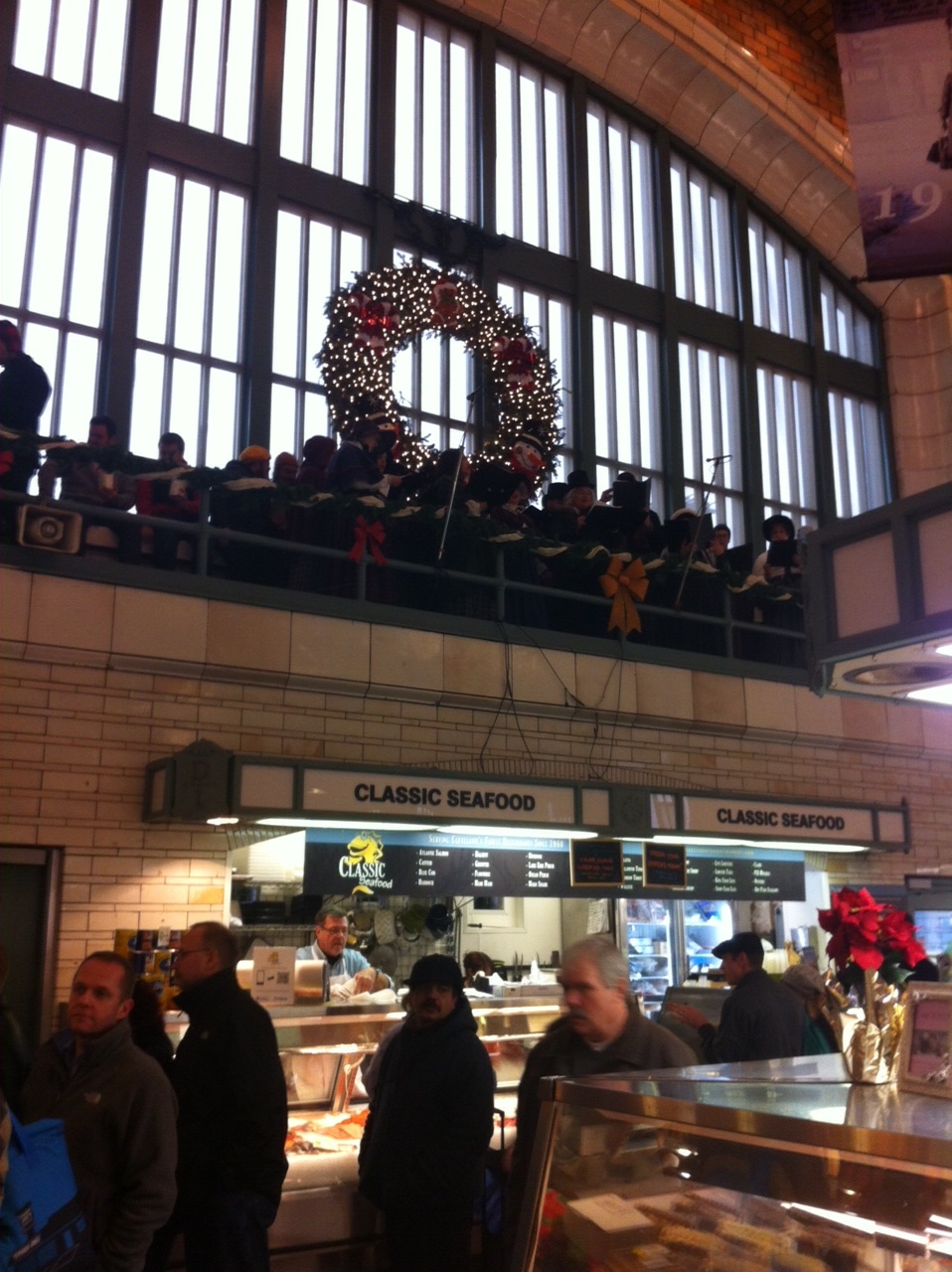 One of my oldest and dearest friends sent me the photo above with the message, “Caroling and crepes at the Westside Market! What could be better?” It’s a good question.