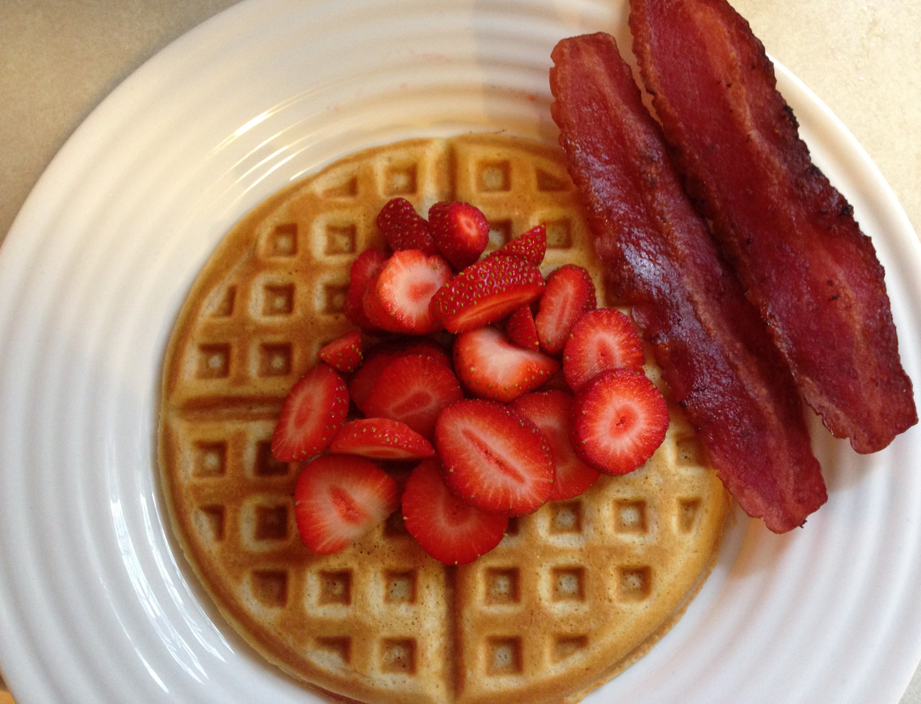 I usually make what we consider a big breakfast on Sunday. This meal typically includes turkey bacon, scrambled eggs, waffles or pancakes or biscuits or hash browns, strawberries, and yogurt. I provided the recipe that I use for pancakes in a post some time ago so today I thought I would share my waffle recipe. Just like with the pancakes, most people have the staples to make homemade waffles in their cupboards or pantries, if you also have a waffle maker, then you’re ready to make these waffles.